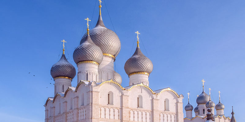 Настоящей визитной карточкой Ростова является кремль. Этот комплекс, состоящий из 5 храмов, собора, жилых сооружений. И все это обнесено укрепительным сооружением — крепостными стенами.